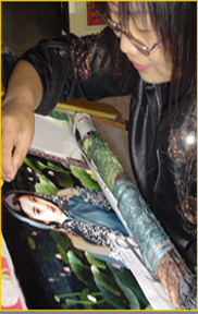 Gu's Embroidery workshop has almost one hundred embroiderers, some of them follow the tradition by stitching at their homes .Many of them are Su's Arts Masters. 80% of them are educated from generation, and 30% are between 40 to 60 years old. They skillfully stitch at random ,flatting or gold wire way. |