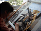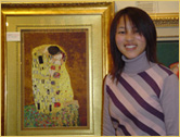 From 2000, she stitched the copy of western oil paintings such as Kiss, Mona Lisa .And these products are collected by the Customers